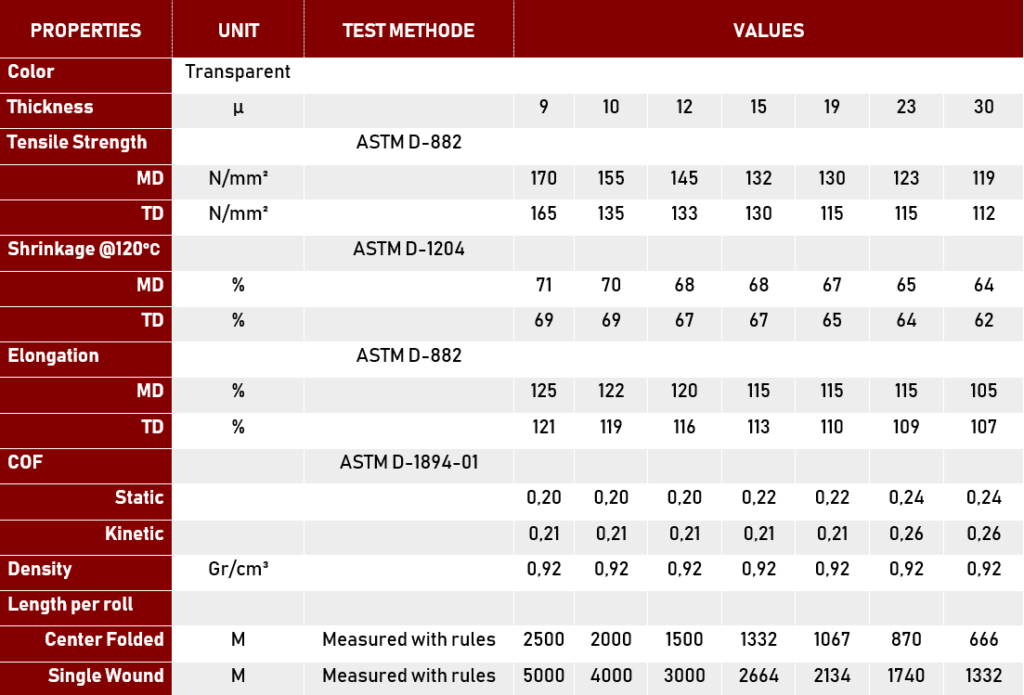 Available Thickness : 9 mic, 10 mic, 12 mic, 15 mic, 19 mic, 23 mic, 30 mic